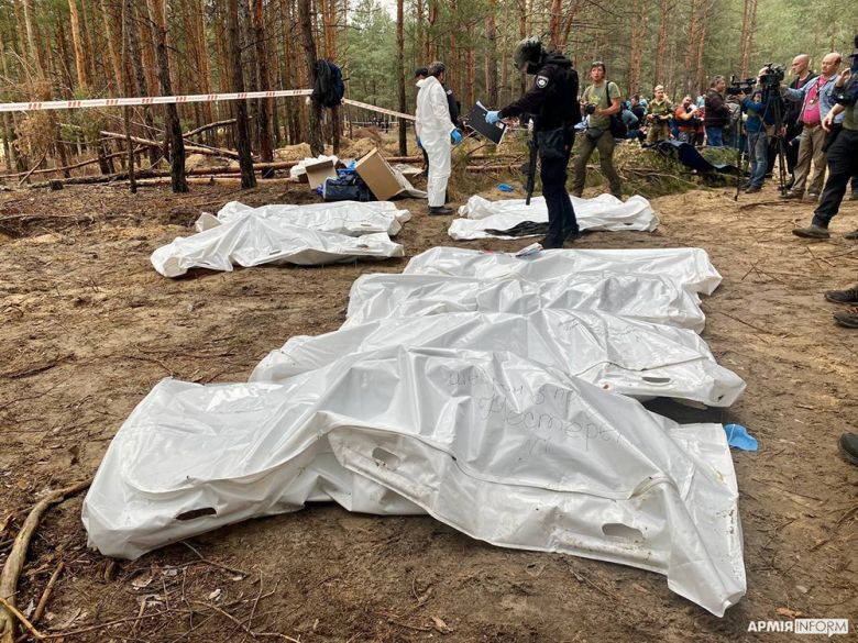 Exhumierung von Leichen in einem Massengrab in Isjum. Foto: Armijainform