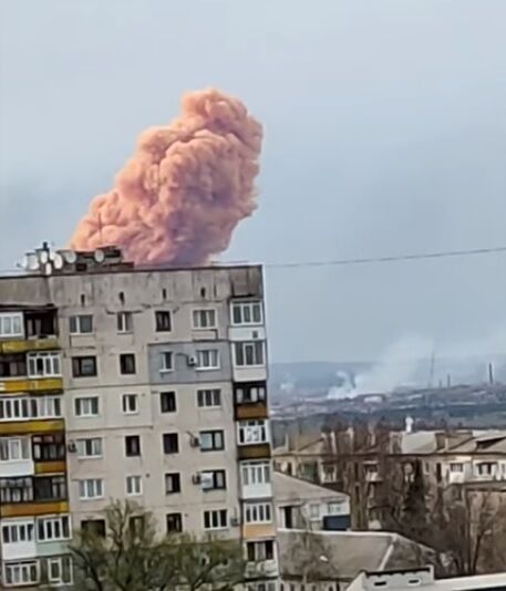 Explosion auf oder neben dem Territorium der Chemiefabrik „Sorja“, 9. April 2022