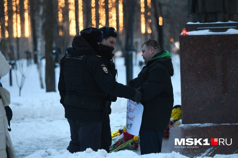 Am 23. Februar wurde in Moskau am Puschkin-Platz Nikita Roditschev mit dem Plakat „Und morgen wird es ein Jahr“ festgenommen.