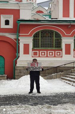 Am 20. Februar nahm die Polizei in Moskau Sergej Jefremov und seine Ehefrau mit einem Plakat „Nein zum Krieg“ an der Kazaner Kathedrale fest.