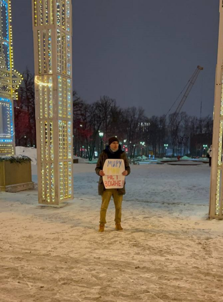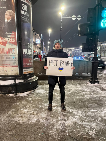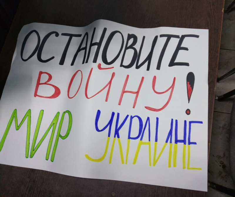 Am 20. Februar wurde in Moskau neben der Metrostation „Puschkinskaja“ Pjotr Lovatschev mit einem Plakat „Für Frieden“ festgenommen.