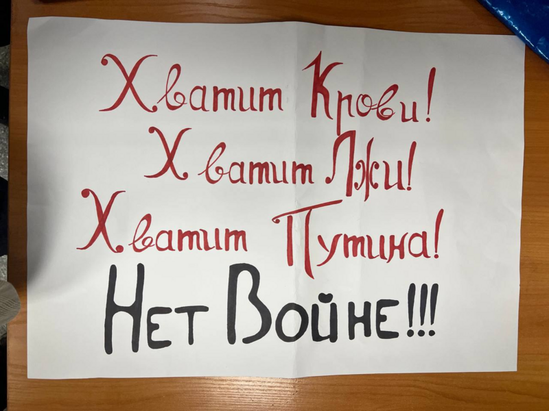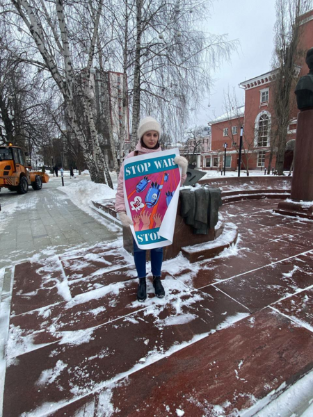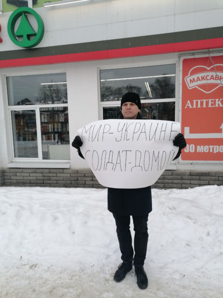 Am 20. Februar wurde in Ufa vor der Markthalle Aleksandr Jurin mit einem Plakat „Nein zum Krieg“ festgenommen.