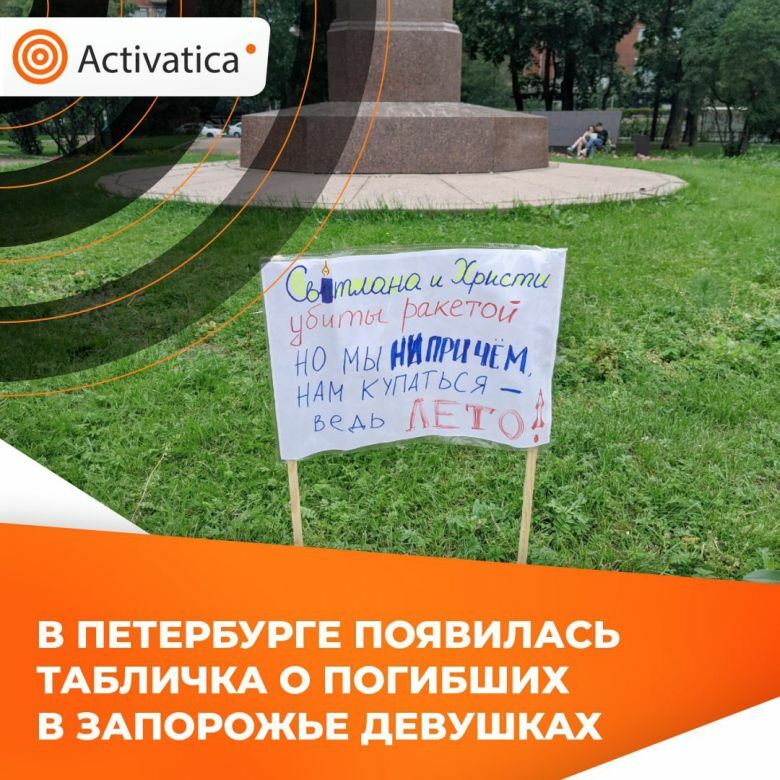 Am Abend des 11. August tauchte auf dem Schevtschenko-Platz in St. Petersburg eine kleine Papptafel mit den Namen von zwei Musikerinnen auf, die am 9. August bei einem russischen Raketenangriff auf Saporischschja getötet worden waren.