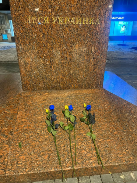 Am Abend des 18. März legten in Moskau einige Personen Blumen am Lesja-Ukrajinka-Denkmal auf dem Ukrainischen Boulevard nieder. Die Polizei prüfte ihre Dokumente und rief sie auf, an keinerlei „ungenehmigten Aktionen“ teilzunehmen. Eine weitere Gruppe Personen kam etwas später und legte blau-gelbe Blumen auf den Sockel des Denkmals.