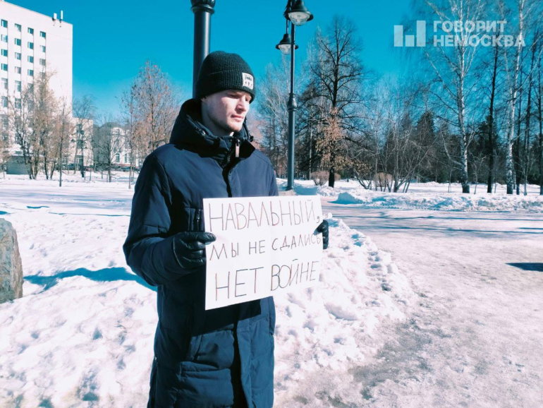 Am 18. März hielt Jurij Koribejnikov aus Tomsk (Sibirien) auf dem dortigen Novo-Sobornaja Platz eine Einzelkundgebung ab mit einem Plakat mit der Aufschrift „Navalnyj, wir haben nicht aufgegeben. Nein zum Krieg.“ Die Polizei nahm ihn fest und brachte ihn auf die Wache.