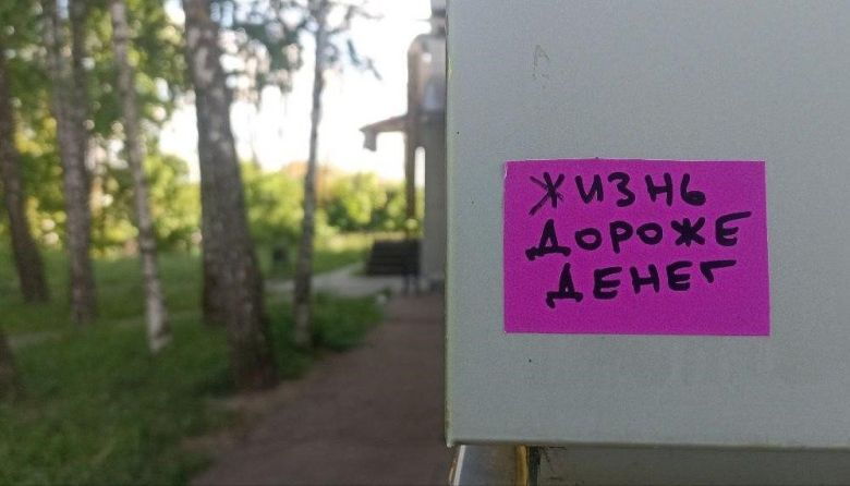 In Smolensk wurden folgende Aufkleber verbreitet: „Der Krieg ist eine Schande“, „Du bist für Putin Fleisch“, „Du bist für Putin ein Nichts“, „Putin – der Feind des Friedens“, „Leben ist wertvoller als Geld“, in Moskau: „Krieg, Diebstahl, Niedertracht“, „Tod, Krieg, Verzweiflung“. Die ersten Buchstaben auf den Aufklebern ergeben die Buchstaben VVP (Vladimir Vladimirovitsch Putin) sowie SVO [die Initialen der russischen Abkürzung für Militärische Spezialoperation].