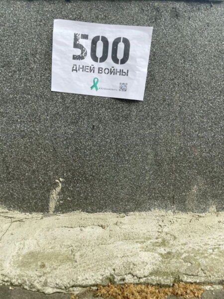 In Jekaterinburg verbreiteten Aktivisten am 8. Juli in der Stadt Anti-Kriegsflugblätter mit den Worten „500 Tage Krieg“.