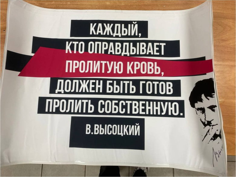 Am 27. März wurde Lev Sokolov festgenommen, der auf dem Puschkin-Platz in Moskau eine Einzelkundgebung abhielt mit einem Plakat mit dem Vyssozkij-Zitat „Jeder, der vergossenes Blut rechtfertigt, muss bereit sein, sein eigenes zu vergießen.“