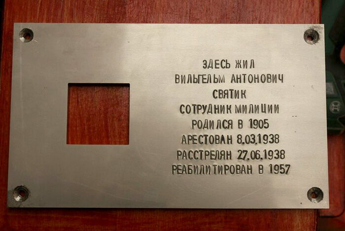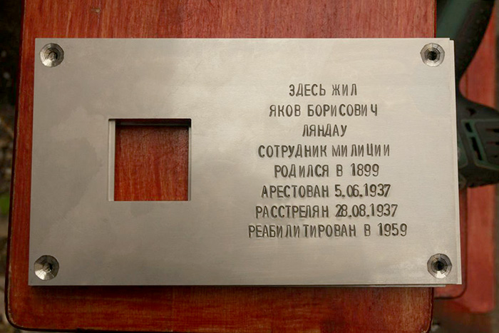 In der Novokusnezskaja wurden fünf Tafeln entfernt - für Jakov Ljandau, Fritz Dinsberg, Wilhelm Svjatik, Leo Auschpiz und Adam Schiprovskij. Sie waren 1937 bzw. 1938 hingerichtet worden. Zwischen 1956 und 1959 wurden sie rehabilitiert.