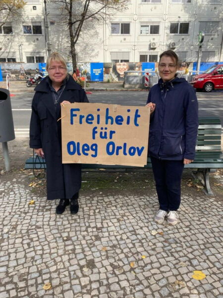 In Berlin fand während der Verhandlung eine Solidaritätskundgebung mit Oleg Orlov gegenüber der Russischesn Botschaft statt, organisiert von der Gesellschaft für bedrohte Völker und MEMORIAL Deutschland.