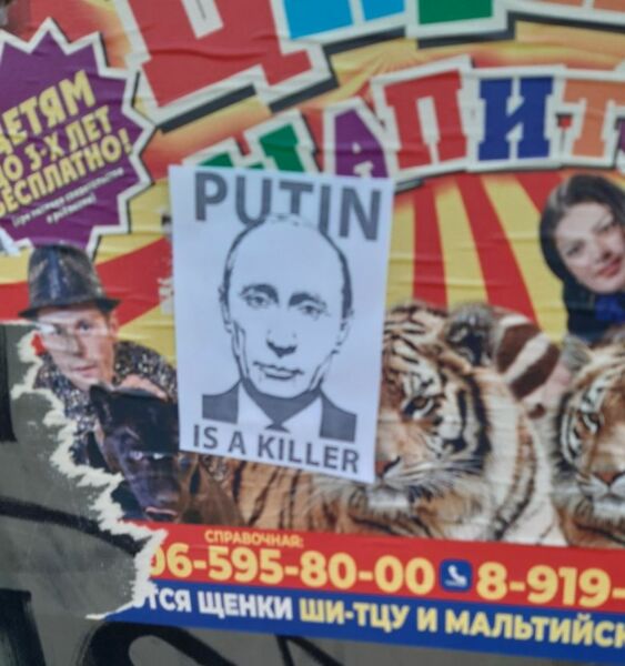 Flugblätter und Anti-Kriegsaufkleber in verschiedenen russischen Städten: