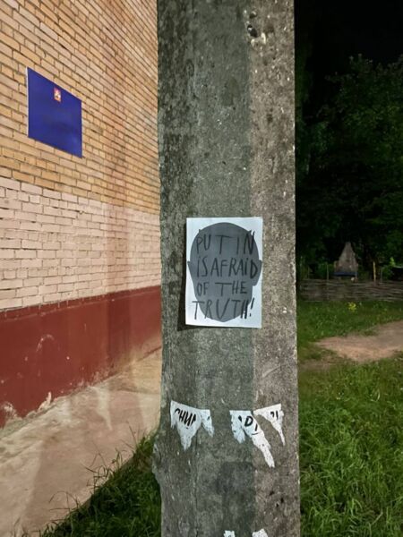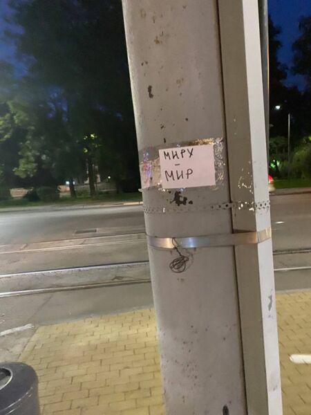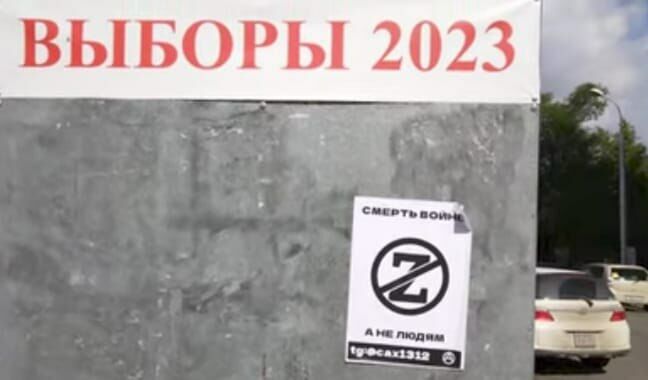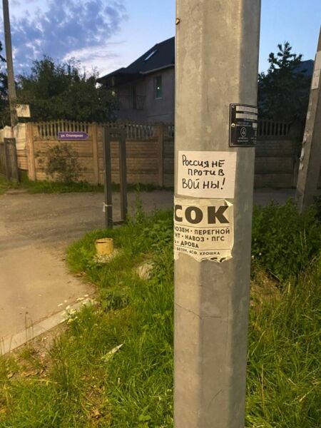 Das Internet-Medium „Sibir.Realii“ hat Anti-Kriegssticker in Chabarovsk veröffentlicht. Das Flugblatt wurde neben einen Aufruf, an den Wahlen 2023 teilzunehmen, geklebt. Nach Angaben von „Sibir.Realii“ wurde das Foto in Chabarovsk gemacht.