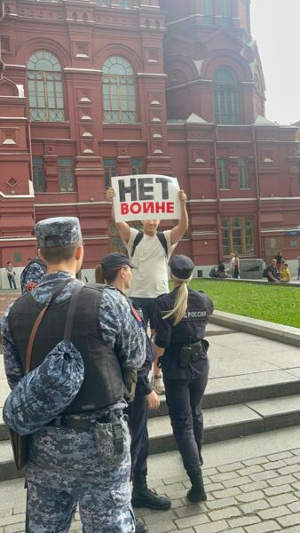 In St. Petersburg hielten drei Personen eine Einzelkundgebung ab zur Unterstützung der Anti-Kriegsaktivistin Olga Smirnova, deren Verfahren gerade vor Gericht untersucht wird. Sie wird beschuldigt, „Falschmeldungen“ über die Armee verbreitet zu haben, das Urteil soll am 30. August gefällt werden. Tatjana Sitschkarev, Kollegin der Angeklagten in der Anti-Kriegsorganisation „Friedlicher Widerstand“, stellte sich mit einem Plakat auf den Platz des Senats. Nach ihr kam die Aktivistin Jekaterina Strimakova ebenfalls mit einem Plakat an dieselbe Stelle, an einem anderen Ort in der Stadt ging der Aktivist Vitalij Ioffe auf die Straße. Alle drei wurden festgenommen, sie werden beschuldigt, eine öffentliche Massenveranstaltung abgehalten zu haben. Zwei Nächte verbrachten sie auf der Polizeiwache, weiterhin droht ihnen eine Ordnungshaftstrafe von bis zu 10 Tagen.