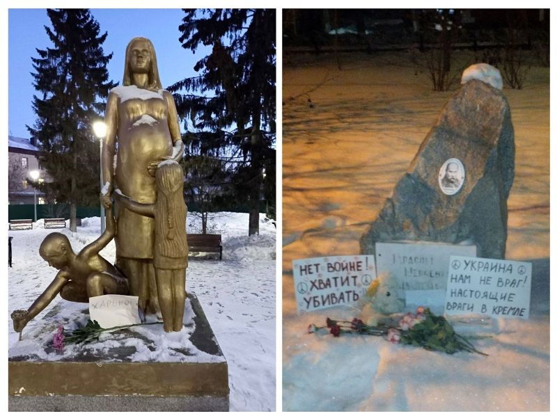 In den verschiedensten Städten Russlands wird gegen den Krieg agitiert. Unten Fotografien aus Moskau, Novosibirsk, Ivanovo und Pensa (Föderationskreis Wolga).