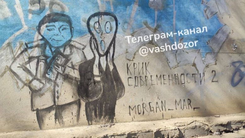 In Volgograd sind in der Gegend der Angarskaja-Straße Graffitis aufgetaucht mit Bezug zu Edvard Munchs Gemälde „Der Schrei“ - Leiter des Einberufungsamtes mit Einberufungsbefehl und Entsetzen des Wehrpflichtigen.