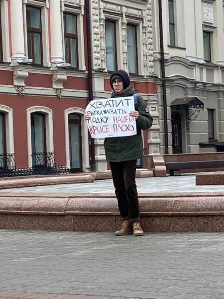In Kazan hielt ein Aktivist eine Einzelkundgebung auf der zentral gelegenen Baumann-Straße ab und hielt dabei ein Plakat mit der Aufschrift: „Hört auf, das Boot zu schaukeln, unserer Ratte ist schlecht.“ Der Aktivist wurde auf die Polizeiwache gebracht, dort verlangte man eine Erklärung von ihm und setzte ihn ohne Aufnahme eines Protokolls wieder auf freien Fuß.