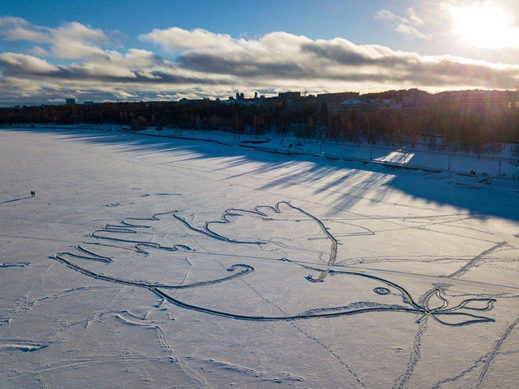 Eine hundert Meter lange Abbildung der Friedenstaube von Pablo Picasso tauchte auf dem Eis des zugefrorenen Onegasees auf. Die Friedenstaube wurde von dem Fotografen Igor Podgornyj zusammen mit anderen Aktivisten angebracht.