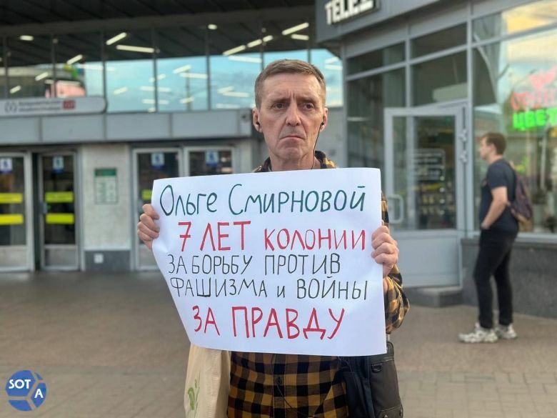 In St. Petersburg hat der Aktivist Vitalij Ioffe zur Unterstützung der politischen Gefangenen Olga Smirnova eine Einzelkundgebung abgehalten. Vitalij trug dabei ein Plakat mit der Aufschrift „Sieben Jahre Lager für Olga Smirnova wegen Kampfes gegen Faschismus und Krieg und für die Wahrheit.“ Die Passanten reagierten auf die Einzelkundgebung unterschiedlich. „Zurecht bekommt sie das“, sagte eine Frau, ein Mann ging auf Vitalij zu und schüttelte ihm die Hand.