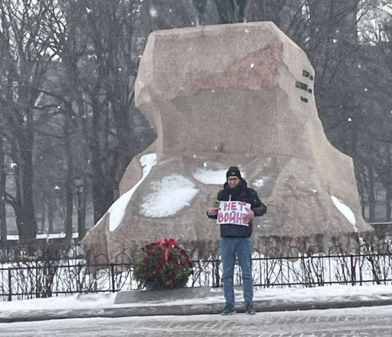 Ebenfalls in St. Petersburg wurde Ivan Popov, Einwohner von St. Petersburg, am Denkmal „Der Eherne Reiter“ mit dem Plakat „Nein zum Krieg“ festgenommen.
